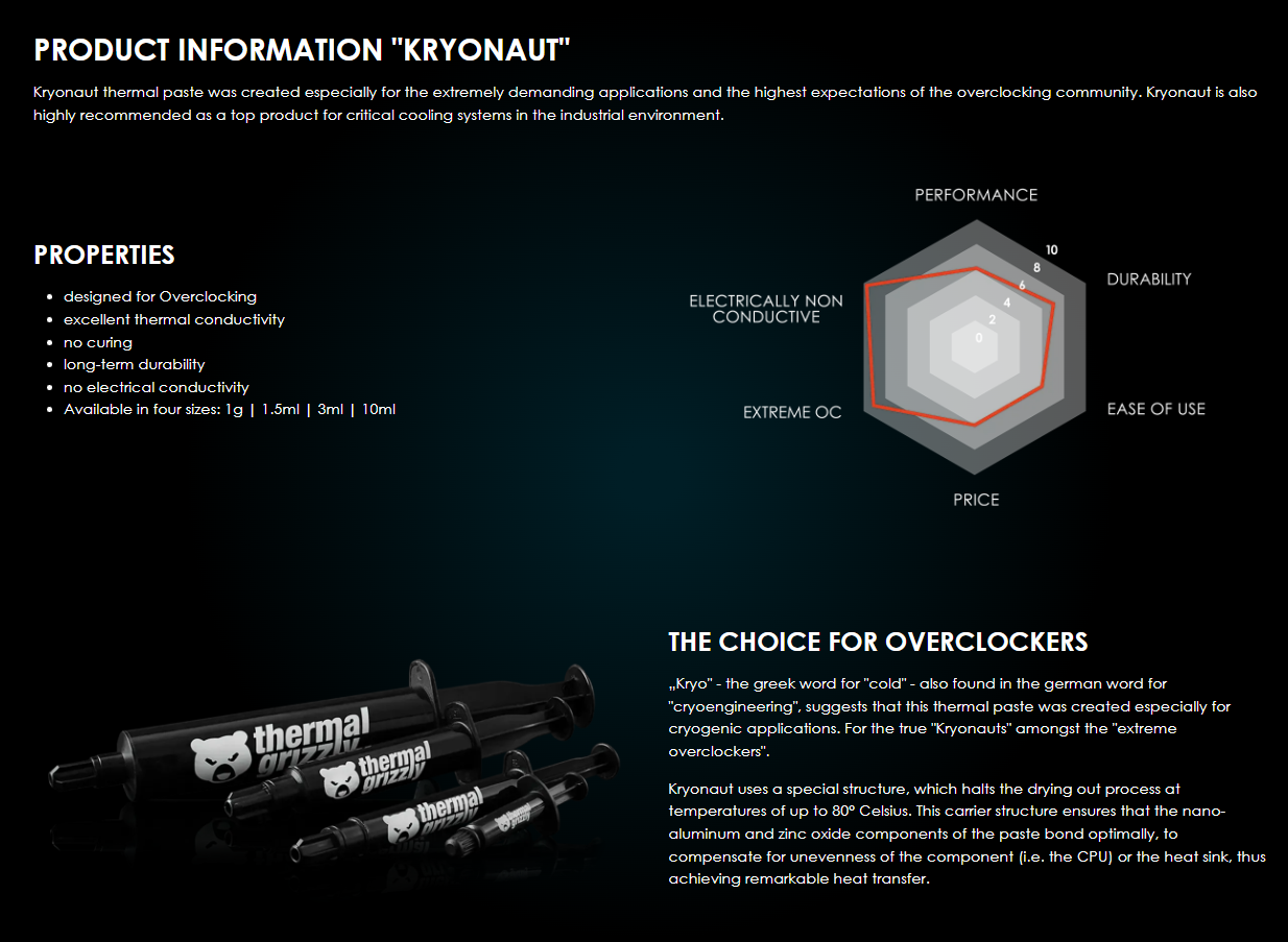 Thermal Grizzly Kryonaut 5.5g / 1.5ml Thermal Paste Cooling All Processors, Graphics Cards and Heat Sinks in Computers and Consoles